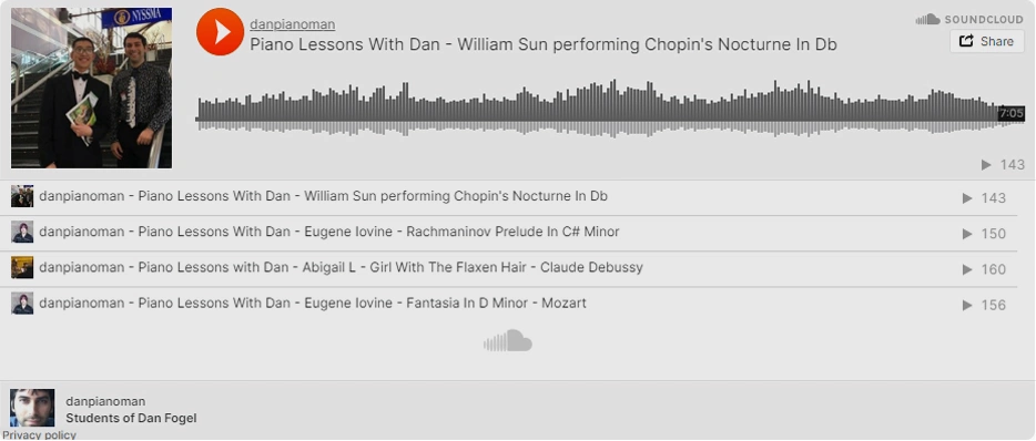 You may hear some recordings of my students in the player below, or facebook.com/pianolessonswithdan for many more past live streams